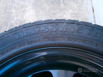 4 cerchi in acciaio misura 6JX 15 H2, completi di 4 gomme invernali M+S NOKIAN WR G2 misura 185/55 R15 86H XL (battistrada al 20-30%). Posso smontare le gomme, non cambia il prezzo.