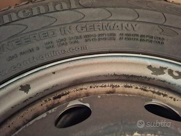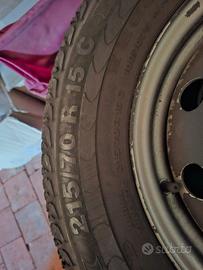 Vendo set 4 cerchi in acciaio e 4 gomme Continental 215/70 R15 C. I cerchi sono originali Fiat Ducato (anche per Citroen o Peugeot) e sono in perfetto stato. Le gomme sono al 50% circa. Solo i cerchi costano 300 euro ... Il prezzo? Inviatemi la vostra offerta!