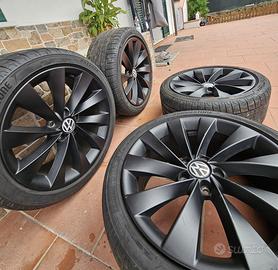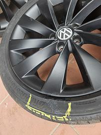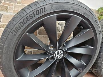 Vendo con dispiacere cerchi originali wolkswagen con gomme Bridgeston potenza. Tre gomme sono perfette (pochi km), solo una gomma sarebbe da sostuire perché lesionata ai lati (come in foto) Montabili su tutte le auto 5x112 wolkswagen, seat, skoda, bmw ecc ecc Codice cerchione: 3C8601025D NON SPEDISCO