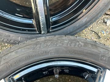 Vendo cerchi completo di pneumatici. Pneumatici circa al 60% marca ceat sportdrive misura 215/45 R16 90W. Cerchi con razze diamantate, misure cerchio 7x16” ET35, misura fori 5x100. Per maggiori informazioni contattatemi. Prezzo 450 euro tutto compreso, leggermente trattabile