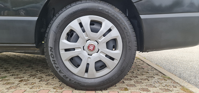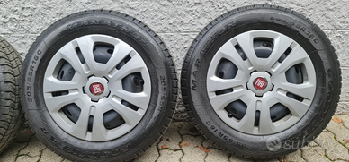 4 Cerchi in acciaio da 16" con copriruota in plastica con montati pneumatici 205/65 R16 per Fiat Talento con soli 6000 km percorsi, DOT 1919, perfetti.