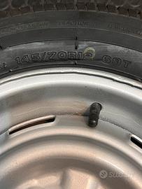 Vendo cerchi originale Fiat 12 pollici restaurati completi di coppette originali e gomme nuove 145/70R12 per FIAT 126 o 500 epoca. Possibilita di spedizione.