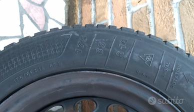 4 cerchi Fiat in acciaio 5.5J 14 ET 35 con copertoni Kleber Quadran2 175 65 R14 in condizioni come da foto. Erano montate su 500 ma ovviamente vanno bene su altri modelli compatibili tipo Panda o Ypsilon