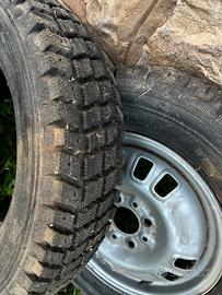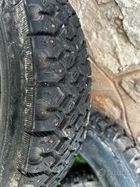 Come da foto, Vendo coppia di cerchi, cosi come in foto, montano Gomme invernali chiodate ! i chiodini si rimuovono semplicemente e si posso usare per per fare del fuori strada! Astenersi da proposte !!! Solo ai realmente interessati