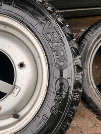 Vendo due cerchi con gomme per vecchie fiat 500 e 126, le gomme sono delle Ceat invernali, sono datate ma sono nuove, non hanno mai camminato. Non sono cotte o secche anzi sono molto ben tenute.