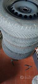 vendo 4 cerchi acciaio 15" 5 fori atacco volswagen completi di gomme termiche 195/65/15 91T Hankook