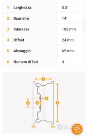 N° 4 cerchi in ferro 14" per Citroen C3 prima serie, tipo MWD 14143, interasse 108mm, alesaggio 65 mm.