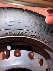 Vendo 4 cerchi in ferro da 14" 4 fori (Toyota Yaris 1.0 benzina) con pneumatici estivi ormai vecchi (175 65 R14 82H). Ritiro a mano prezzo non trattabile
