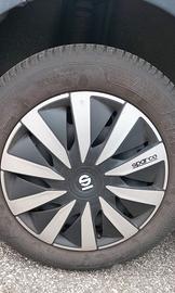 Vendo cerchi in ferro 5 fori , con pneumatici invernali 185 60 R15 (Kleber Krisalp HP3) già montati e certamente utilizzabili per almeno un altro inverno (il mio gommista conferma). Attribuisco un valore residuale ai pneumatici. Volendo aggiungo 4 copricerchi SPARCO comprati a ottobre 2024 per 10 euro.