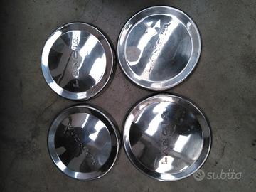 N. 4 calotte ruote in acciaio inox originali, in buono stato (2 leggermente ammaccati sullo spigolo), per LANCIA FULVIA BERLINA/Coupé