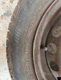 Vendo 4 cerchi in ferro diametro 14, con due pneumatici invernali 165 60 R14. Attacco fiat.