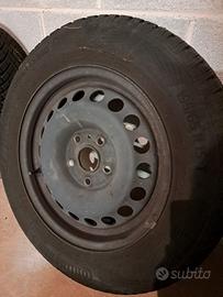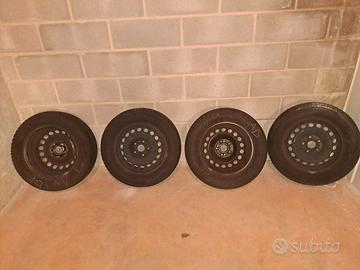 Vendo quattro cerchi in ferro da 15 con gomme invernali montate per Volkswagen Golf e altre auto con 5 attacchi sul mozzo.