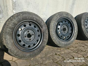Vendo, in buono stato di conservazione, quattro cerchi in ferro da 14 pollici montati su suzuki swift. I cerchi sono equipaggiati con 4 pneumatici invernali Sava Eskimo S3+ misura 165/70 R 14 - 81 T.