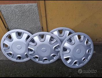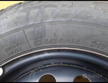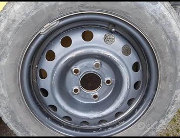 Vendo causa passaggio ad altra autovettura 4 cerchi in ferro 5 fori con gomme invernali montate usate + 4 copri cerchi in plastica!!!!!