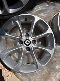 Vendo set di 4 cerchi in lega originali Smart (modello 453), da 15 pollici, in ottime condizioni estetiche come da foto. I cerchi presentano il design classico a 8 razze con logo centrale Smart incluso.