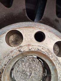 4 Cerchi lega 17x8,5 j ET50 interesse fori 112. Provenienti da audi TT. Nero opaco. Graffi da marciapiede ma non hanno cricche. Ci sono ancora le gomme montate in buono stato con DOT molto vecchio.