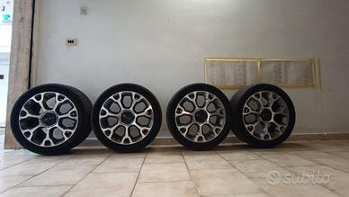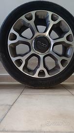 Vendo 4 cerchi in lega misura 17" per Fiat 500. Le gomme montate sono delle Hankook al 40% di battistrada interrcambiate regolarmente con gomme invernali.. Vendo per cambio autovettura. presentano leggeri graffi come da foto ma probabilmente con una leggera lucidatura vanno via. Bellissimi come originali.