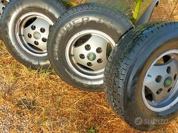 vendo cerchi lega Land Rover per range rover originali, ma io li avevo su defender del 1995 benzina (ex carabinieri) con gomme datate ma ancora valide (285 85 16)