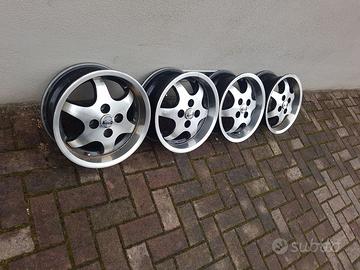 Vendo 4 cerchi in lega Alessio diamantati a canale rovesciato 6x14 - 4x100 - ET33 - foro centrale da 60 mm. riducibile a 57mm. e a 54 mm. tramite appositi adattatori forniti a corredo quindi installabili su vetture Renault, Volkswagen e quasi tutte le auto giapponesi (Suzuki, Mazda, Toyota ecc.) i cerchi hanno segni estetici del tempo ma sono perfettamente DIRITTI. In aggiunta 2 pneumatici NUOVI misura 155/65 R14 75T. Vendo a Euro 150 in blocco oppure 100 Euro i cerchi e 50 Euro le gomme. Se interessati telefonare la sera dopo le 20.30 al 3388314981