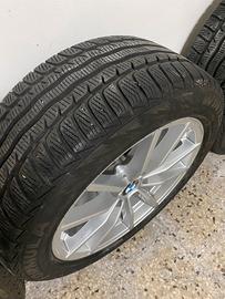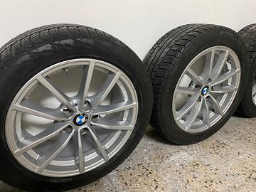 Vendo 4 cerchi in lega originali BMW con pneumatici 225/50 17. il diametro del mozzo centrale (center bore) è di 66,6 mm. pattern di bulloni 5x112 che è il nuovo standard BMW dal 2018 in poi. I cerchi sono compatibili anche con altri marchi premium come Audi e Mercedes eccc…