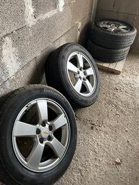 Vendo cerchi in lega misura 16 precedentemente montati su Chevrolet Cruze. I cerchi sono in ottime condizioni e sono compresi anche 4 pneumatici marca Continental 205/60 R16. (I pneumatici sono in ottime condizioni anche se sono vecchi).