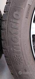 Cerchi in lega originali Renault con gomme invernali 205/60 R16 adatti per automobili con gomme estive da 17. Le gomme sono ferme da un po' di tempo perchè inutilizzate. I cerchi sono in ottime condizioni; due di essi hanno la vernice trasparente in corrispondenza della parte argentata leggermente segnata ma non dovuti a sfregamento o altro. Probabilmente per la temperatura dei freni o per gli agenti atmosferici.