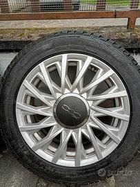 cerchi in lega 15" per fiat 500 ottime condizioni con gomme invernali praticamente nuove , adattabili a 4 stagioni se specificato sul libretto dell auto sigla 82 T. misura 185, 55,15