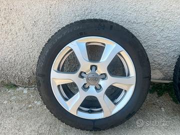 Vendo cerchi in lega da 16 pollici, compatibili con Audi A3 e A4. I cerci montano pneumatici invernali Pirelli Winter 210 - 205/55 R16 91H M+S. Per il montaggio su A3 si utilizzano gli anelli di centraggio 66.6-57.1, compresi con i cerchi.