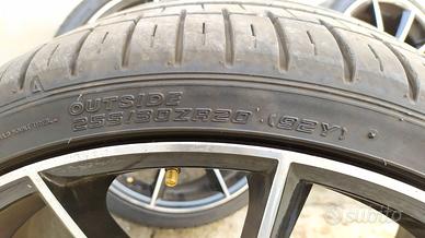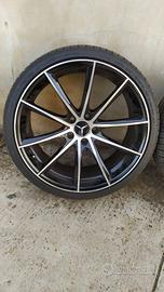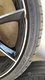Vendo 4 cerchi in lega per Mercedes 9J x 20", diametro fori 5 x 112 mm, con 2 gomme in buono stato Falken Azenis FK510 di misura 255/30 completi di bulloni. Solo un cerchio è da riparare, come visibile in foto.