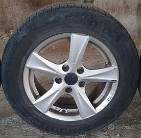 Rari Cerchi in lega Golf V 15" a razze sdoppiate, disegno molto particolare. Completi di 4 pneumatici (2 buoni e 2 usurati da errata convergenza). I cerchi sono dritti e hanno normali segni di usura. L'attacco è il classico a 5 fori 5x112. Un coprimozzo ha "perso" il logo VW