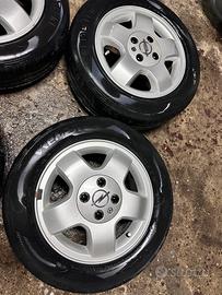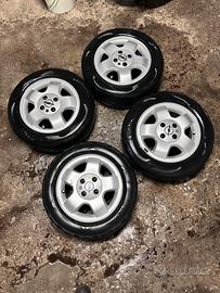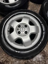Vendo cerchi in lega come da titolo. I cerchi sono in buone condizioni, considerando l’età dell’auto; presentano qualche graffio da usura, considerando che hanno girato per 25 anni, ma sono sempre stati utilizzato solo 6 mesi all’anno, in quanto per le gomme invernali venivano montati altri cerchi. Attualmente montano delle gomme estive, ancora sfruttabili. Li vendo semplicemente perché ho venduto la macchina in inverno con le gomme invernali, e questi sono rimasti a me.
