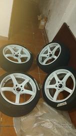 cerchi e gomme 4 stagioni nuovissimi. percorsi, sia cerchi che gomme, circa 1800 km. Ho altre foto in caso qualcuno sia interessato. i cerchi sono un po sporchi ma vi garantisco che sono perfetti e senza un minimo graffio. Anche i 4 pneumatici sono nuovi. percorsi in 5 mesi circa 1800 km, montati su una Honda Civic FK8. vendo i cerchi perché l'auto la userò solo nel periodo estivo.