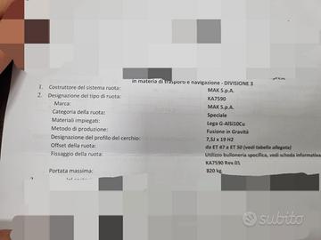 Vendo in conto vendita peri un amico, cerchi in lega della Mak da 7,5J x 19 H2 condizioni come da foto, con gomme della Continental Sportcontact 7 DOT 03/24 con circa 50%.