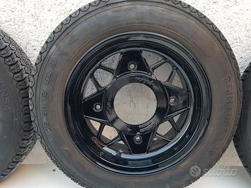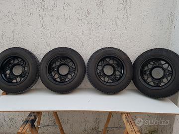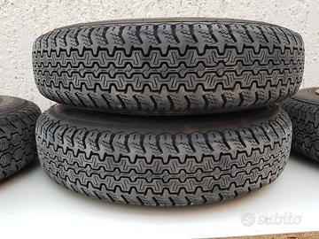 Vendo, in ottime condizioni ( come da foto), cerchi in lega da 12 Millemiglia ORIGINALI anni 70 sabbiati e verniciati nero lucido, gommate con pneumatici Pirelli CN54 125 SR12 62S usati pochissimo, forse 500 Km, per FIAT 500 e o 126 epoca.