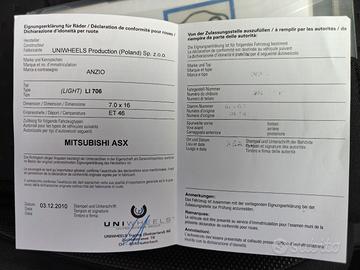 Cerchi in lega Mitsubishi Asx da 16 '