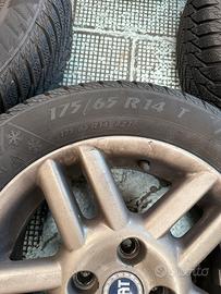 Vendo 4 cerchi in lega r14 originali Fiat equipaggiati con gomme invernali usate. 175/65/14 in buono stato.