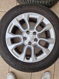 Vendo cerchi in lega da 17 per Jeep Compass - Renegade pari al nuovo. Perfetti, nemmeno un segno di usura e comprensivi di sensori pressione ( valvole TPMS originali Jeep). Hanno 6 mesi. Li vendo con 4 pneumatici quattro stagioni marca Good Year al 50 % di usura.
