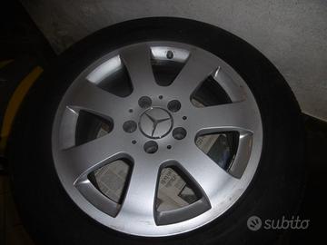 Cerchi in lega originali Mercedes classe E W211, (anno di produzione 2002 - 2009) 16" completi di pneumatici estivi 225/55/16 99V (gomme ancora utilizzabili, ma ormai datate). Cerchi pari al nuovo, usati solo su auto servizio cerimonie.