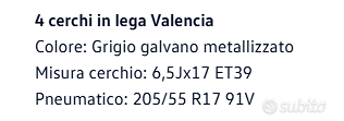 Vendo cerchi in lega da 17", originali Volkswagen, colore grigio galvano metallizzato.