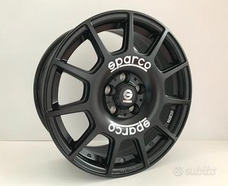 Per gruppo Volkswagen sono disponibili ruote Sparco modello Terra misure 7,5x17 ET35 mozzo 5x100 finitura Nero Opaco scritte Bianco RACING con sede tappo coprimozzo .