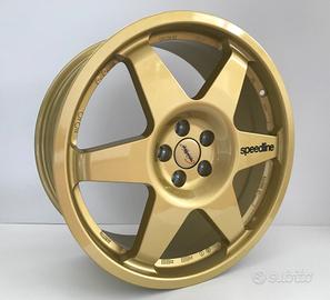 Per gruppo Subaru sono disponibili ruote Speedline Corse modello 2013 misure 8x18 ET 48 5x100 finitura Oro Lucido applicazione RACING con tappi coprimozzo e dadi per il fissaggio ruota, produzione 100% Made in Italy .