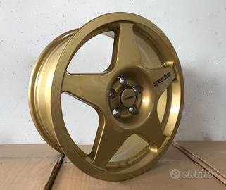 Per gruppo Subaru sono disponibili ruote Speedline Corse modello Champion misure 7x16 ET46 5x100 finitura Oro Lucido applicazione RACING con tappi coprimozzo e dadi per il fissaggio ruota .
