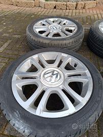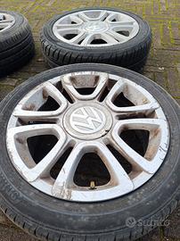 Vendo come da foto cerchi in lega Volkswagen up del 2013 con segni di usura e graffi , due cerchioni sono lievemente piegati. Montano due copertoni differenti ma due sono forate e non riparabili. Prezzo trattabile Vendo per rottamazione auto. ritiro in zono