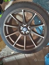 Vendo set di cerchi Japan racing JR11 da 18" con misure differenziate: per l'anteriore 18"x8" et30 foratura 5x114-120 per il posteriore 18"x9" et30 foratura 5x100-120 Gommate tutte e 4 con Hankook ventus S1 evo³