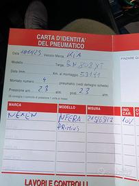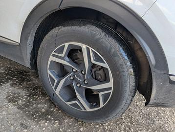 Cerchi Kia da 17 con pneumatici seminuovi (solo 5000 km come si evince da scheda gomme e contachilometri al momento del cambio gomme).