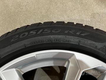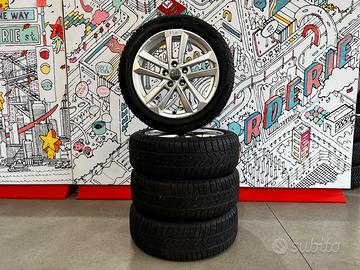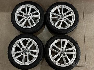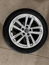 Set ruote invernali composto da cerchi in lega originali AUDI 5X112 canale 6,5J ET 43 compreso pneumatici invernali M+S in ottimo stato di battistrada marca PIRELLI sottozero 3 misura 205/50/17 ( 205 50 17 ) 93H logo centrale compreso