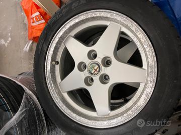 4 Cerchi in lega fondmetal a stella 5 razze design anni 80/90 7J ET 24 da 15 pollici, attacco 5 fori alfa romeo.