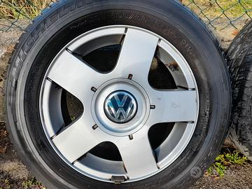 Coppia di cerchi in lega diametro R 15" originali Volkswagen Golf serie 4, gommati con pneumatici visibili in foto.