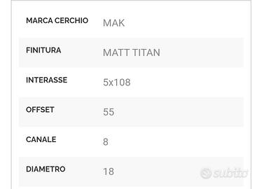Come da titolo vendo cerchi da 18" MAK grigio scuro attacco 5 fori land rover con dadi e copri dadi stesso volore dei cerchi usati ma come nuovi. Prezzo trattabile
