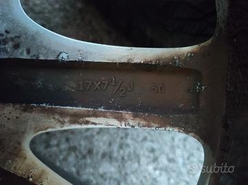 cerchi originali Mazda 17x7,5j 50, montano pneumatici 225 55 R17. offset=50. in ottimo stato e dotati di coprimozzo. 2 cerchi hanno un piccolo difetto come da foto, non si nota molto. Preferisco scambio a mano, non spedizione. Prezzo abbassato ulteriormente a 500 €